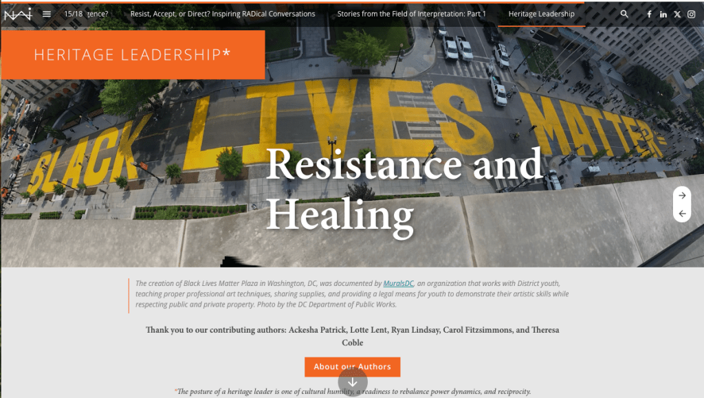Legacy Magazine, May/June 2025, Resistance and Healing, https://national-association-for-interpretation.foleon.com/legacy/may-june/heritage-leadership